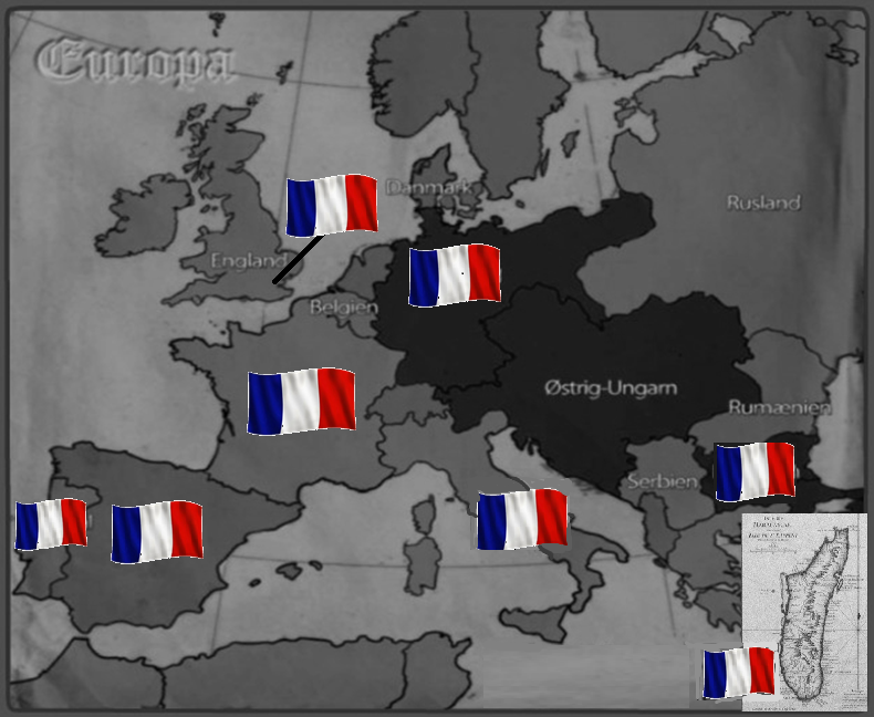 Frankrig er et kongerige med en konge med mange magtbeføjelser. Landet har siden starten været aktiv i Europas imperaliseringen og er med sine 64 millioner indbyggere stadig langt fra at vinde melodigrandprix.